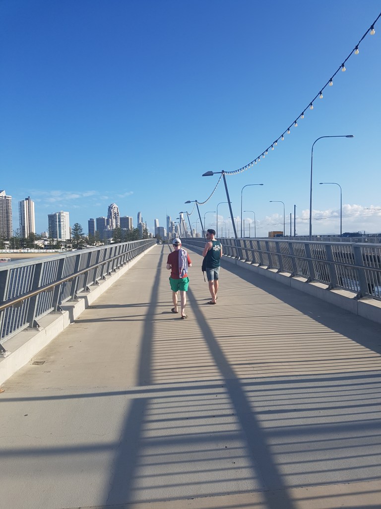 The call came to an abrupt end with no positive outcome. We went down to the beach at Surfer’s Paradise with our tails between our legs. The swim and the game of footie was a welcome distraction.